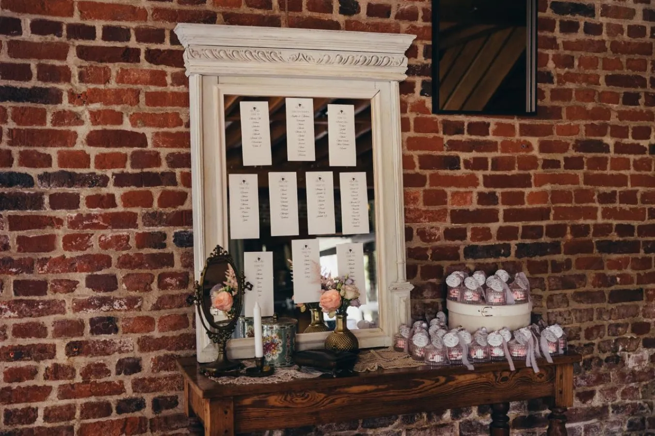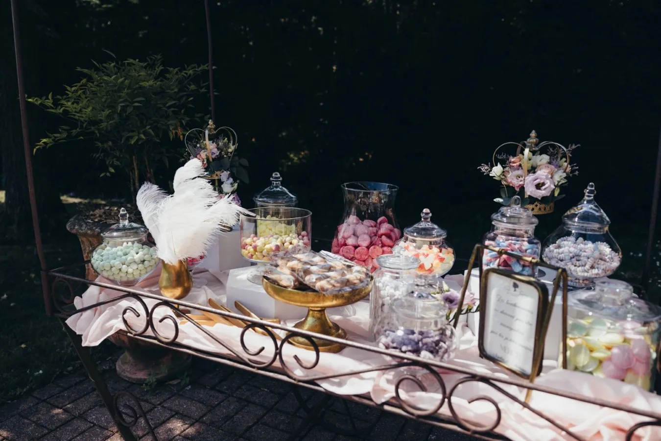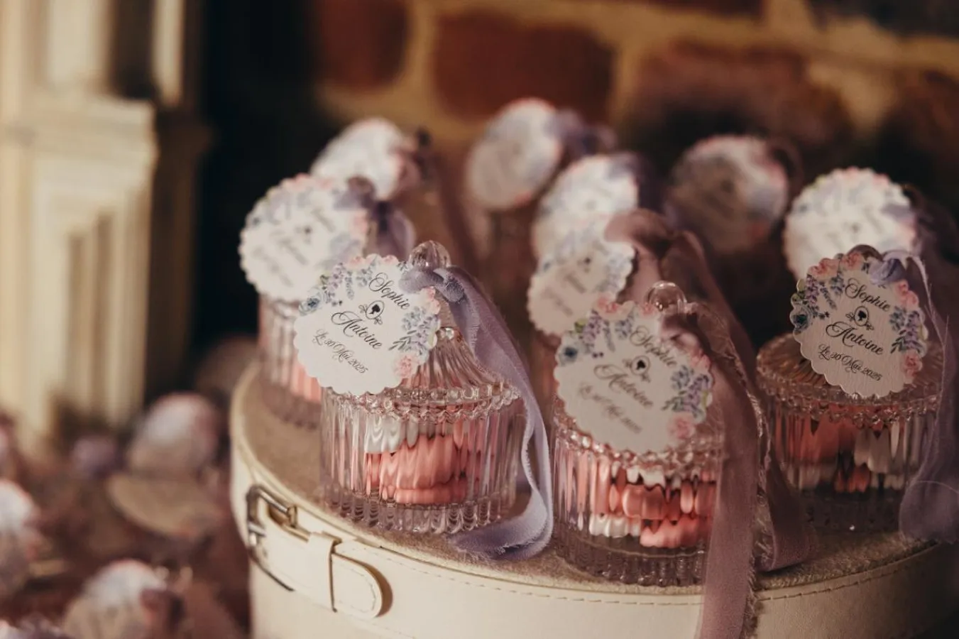 Votre décoratrice a aussi travaillé le thème sur la tirelire et le candy bar. Ainsi, cette multitude de détails a plongé les invités dans l’univers d’un mariage Bridgerton romantique à souhait !
